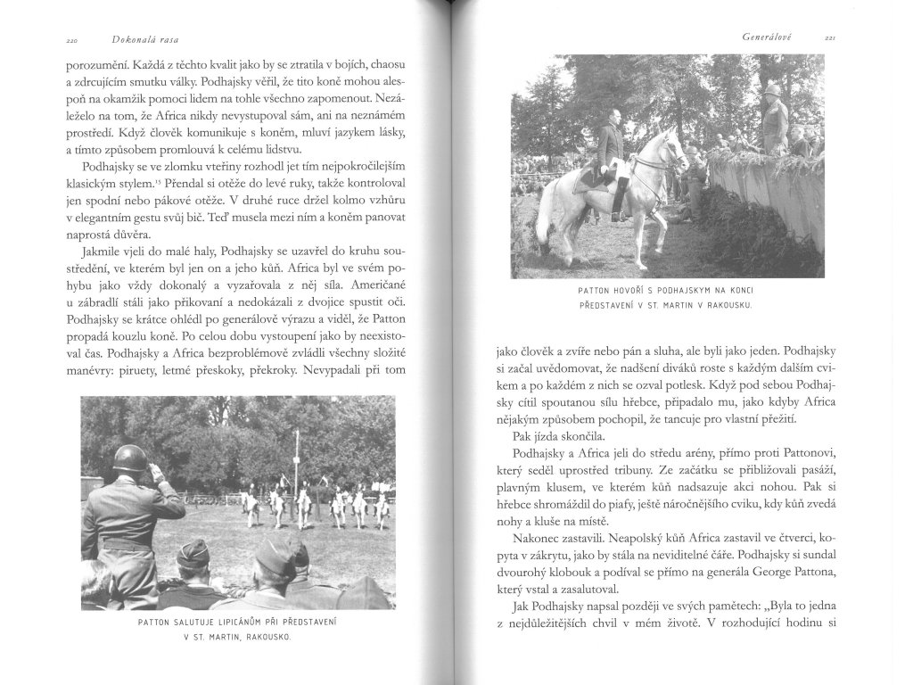 Podhajsky sledoval Pluta, jak se tiskne ke stájovému kolegovi Africovi. Byli vystrašení, bělmo se jim blýskalo v očích, prudce dýchali široce rozevřenými nozdrami. Nemohli utéct, jen frkali a hrabali kopyty do podlahy.