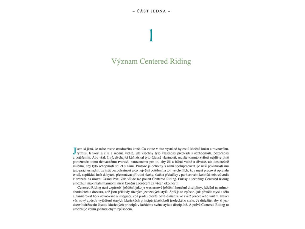 Centered Riding není jen jezdecký styl, jako například drezura, honební nebo westernové ježdění. Je to spíš způsob reedukace mysli a těla jezdce, aby dosáhl větší rovnováhy a mohl tak lépe komunikovat se svým koněm. Zakladatelka Sally Swift vyvolala revoluci v ježdění na koni tím, že ukázala, jak jezdec díky dobrému používání svého těla změní své působení na koně ze sedla.