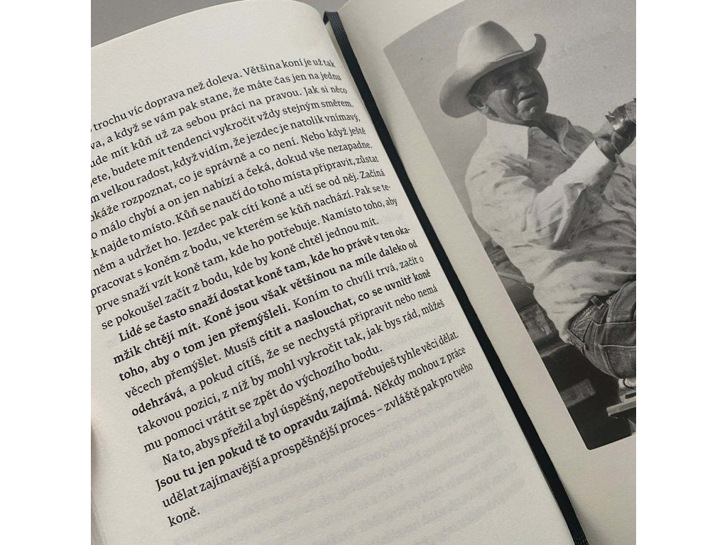 „Věc, na které mi u koní nejvíce záleží, je naše společná komunikace. Je to něco, na čem nikdy nepřestanu pracovat. Sleduji osamělé koně i koně ve stádě, sleduji koně domestikované i divoké mustangy, snažím se vnímat jejich duši, jejich přirozenost. Pozorné studium jejich akcí a reakcí mi pomáhá volit správný přístup. Díky tomu je dokážu požádat takovým způsobem, že mi rozumí a chtějí mi vyhovět. Věřím, že tak je to přirozené. Je to cit, který jsem sám v sobě a pro sebe oživil.“