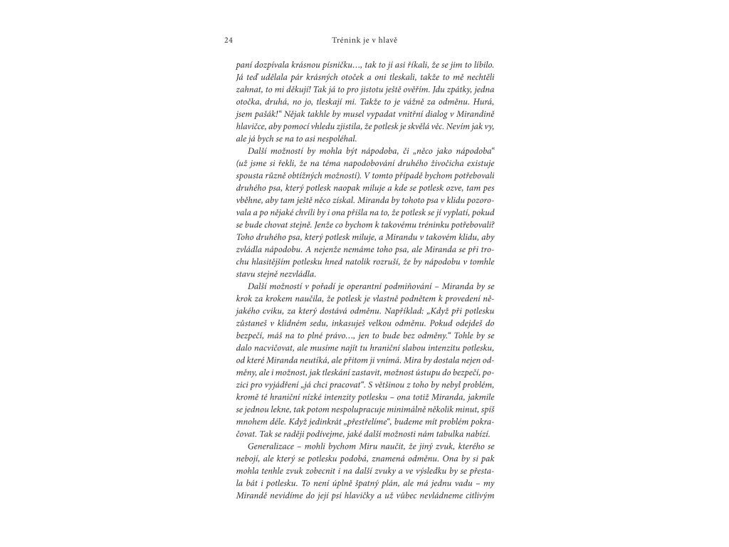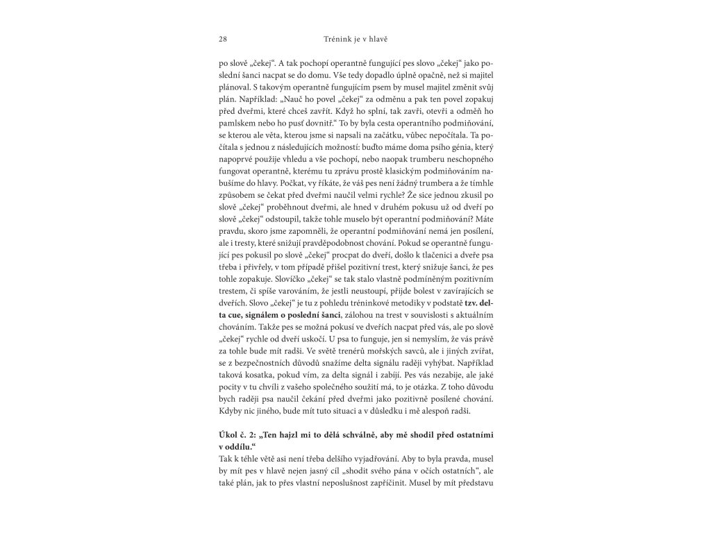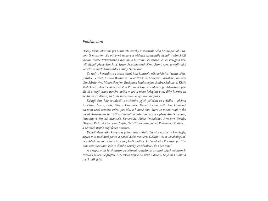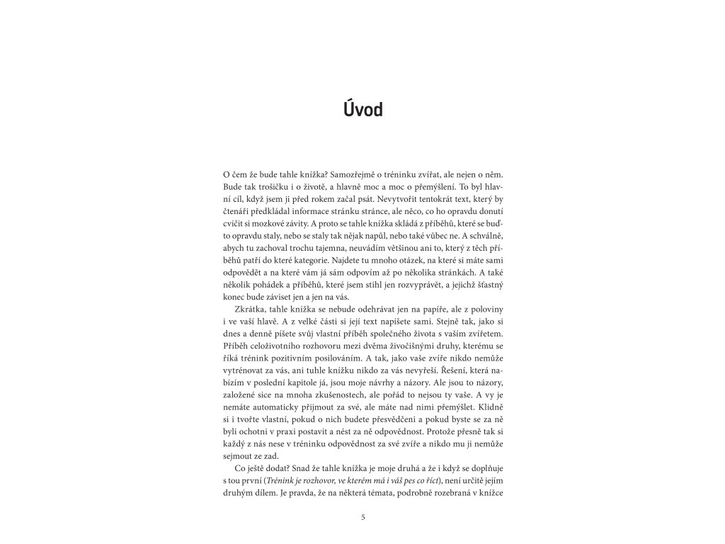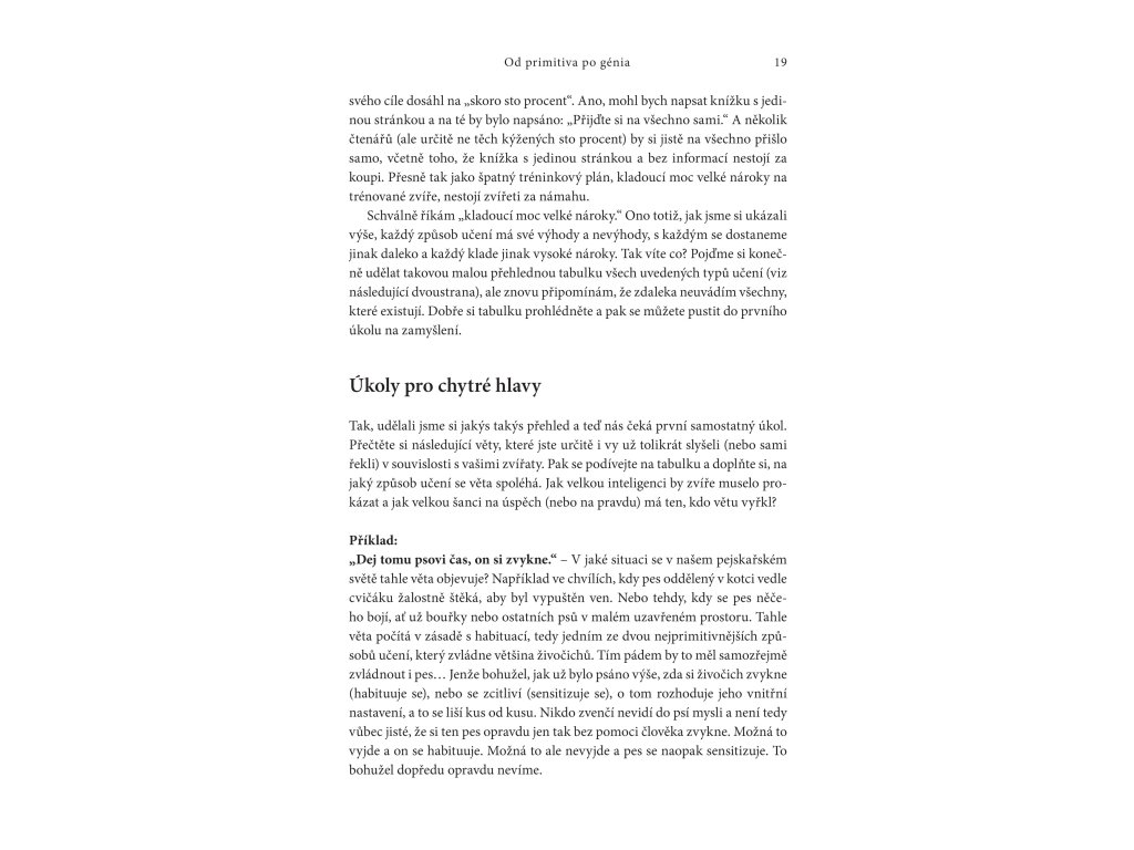 Důležitou částí knihy jsou i příklady z praxe (či fantazie autora), na nichž si čtenáři mohou vyzkoušet roli trenéra, který má za úkol dané situace vyřešit. Aby se čtenáři naučili myslet jako trenér zvířat, je tato část koncipována tak, aby došli ke svému řešení samostatně. Své postupy pak mohou srovnat s tím, jak by na to šel sám autor.