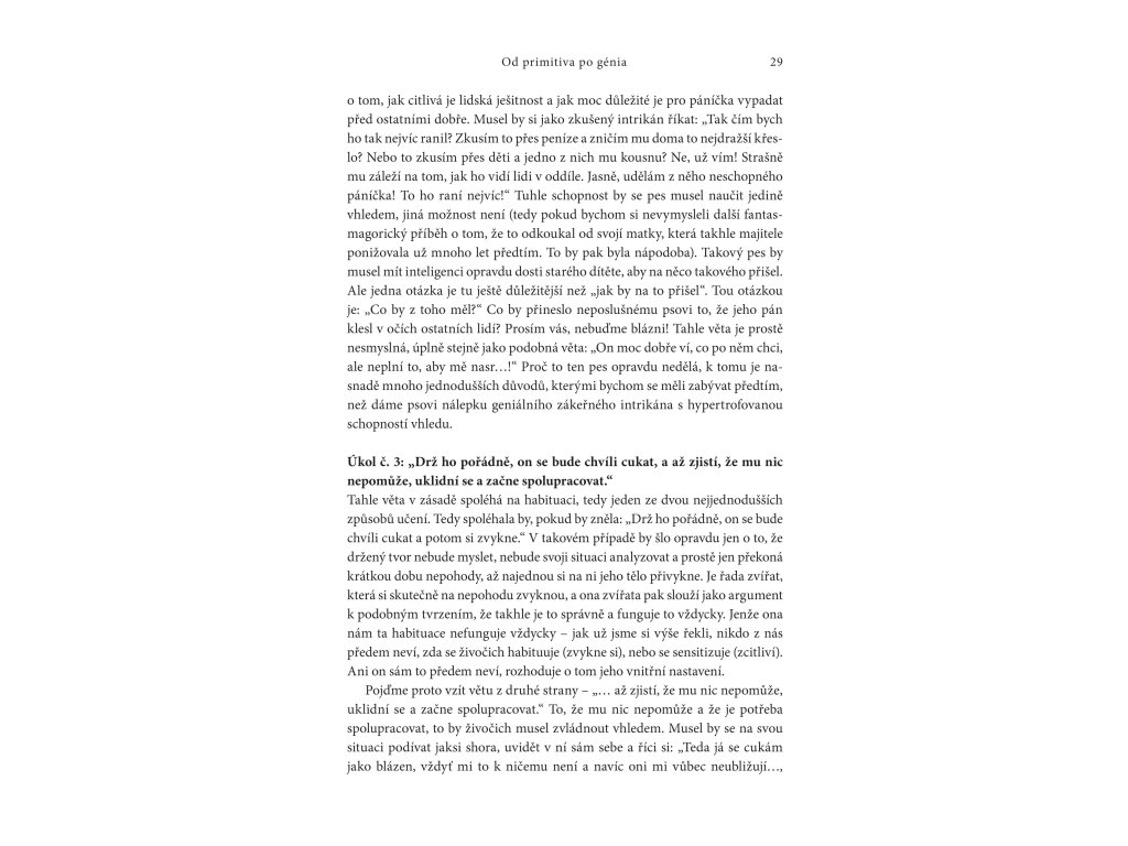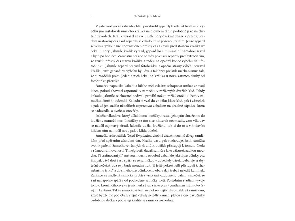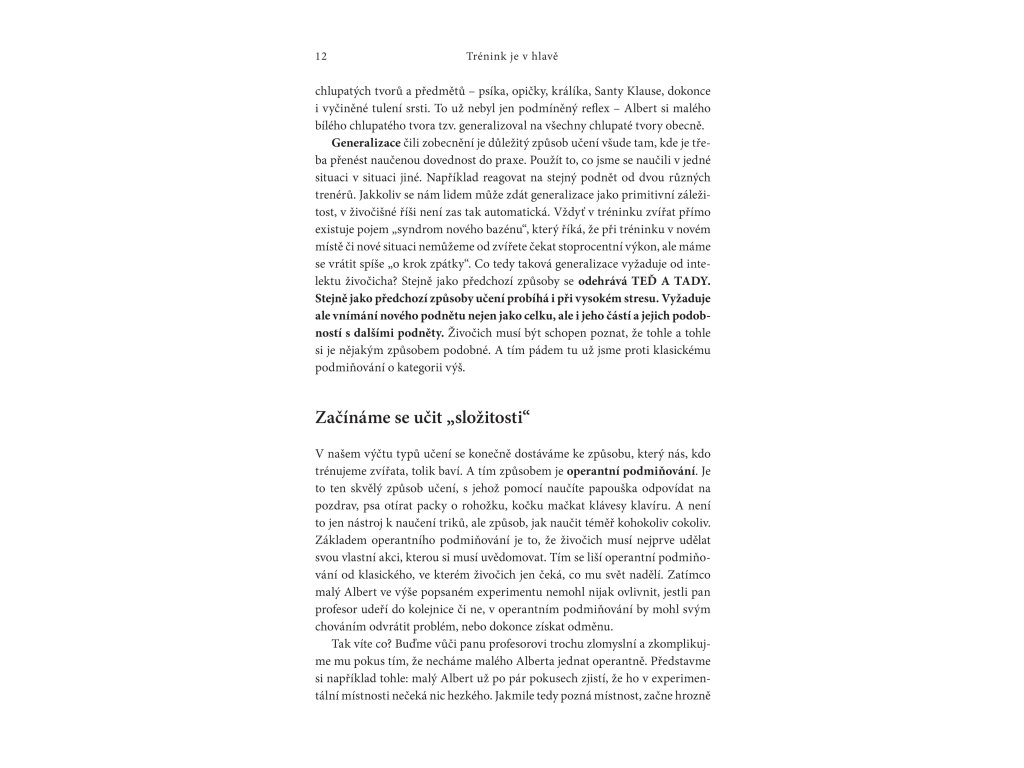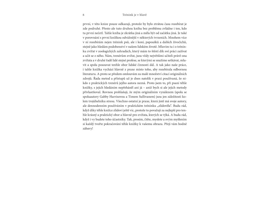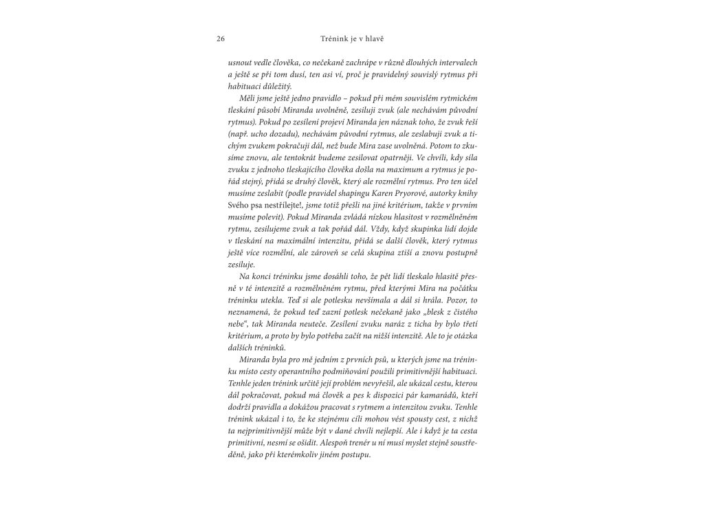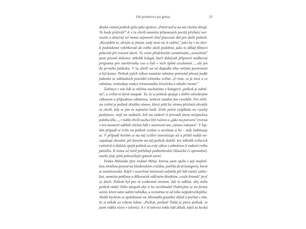 Důležitou částí knihy jsou i příklady z praxe (či fantazie autora), na nichž si čtenáři mohou vyzkoušet roli trenéra, který má za úkol dané situace vyřešit. Aby se čtenáři naučili myslet jako trenér zvířat, je tato část koncipována tak, aby došli ke svému řešení samostatně. Své postupy pak mohou srovnat s tím, jak by na to šel sám autor.