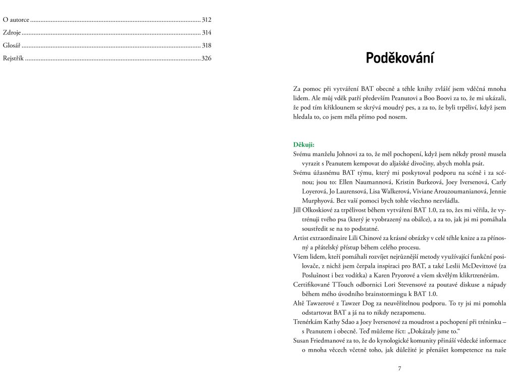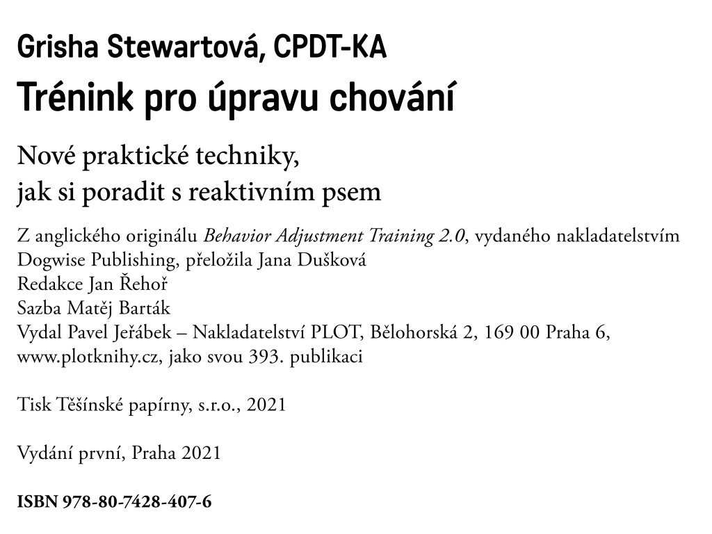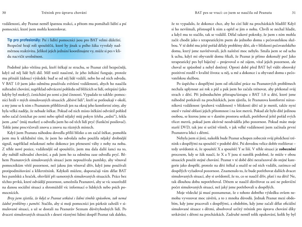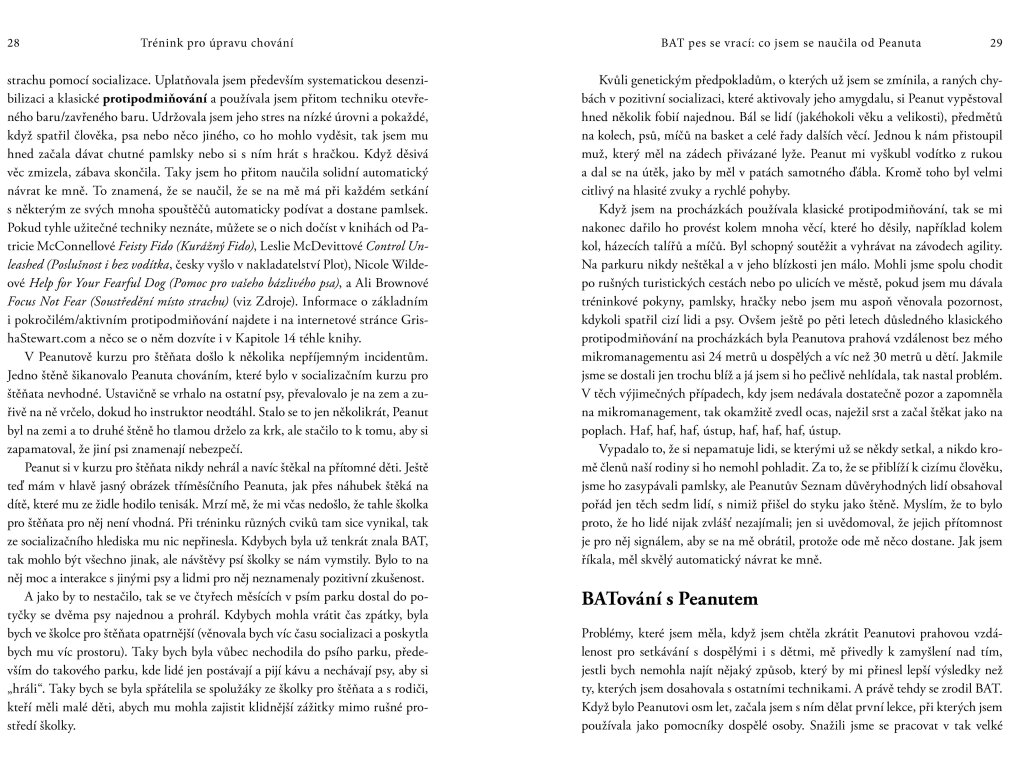 Výcvikovou metodu BAT (Behavioral Adjustment Training) vyvinula trenérka Grisha Stewartová přes více než 10 lety a od té doby ji s úspěchem používá. A nejen to – v průběhu let ji neustále vylepšovala a odlaďovala, což vedlo jak k lepším výsledkům, tak k novému, aktualizovanému vydání její knihy, kterou nyní přinášíme českým čtenářům.