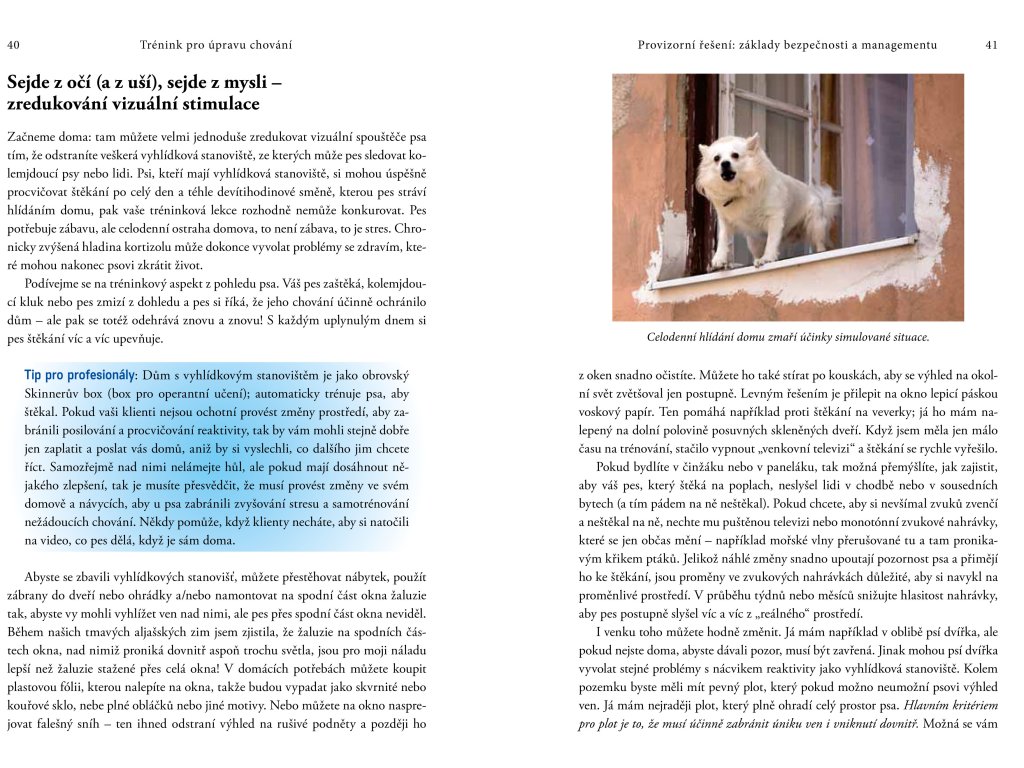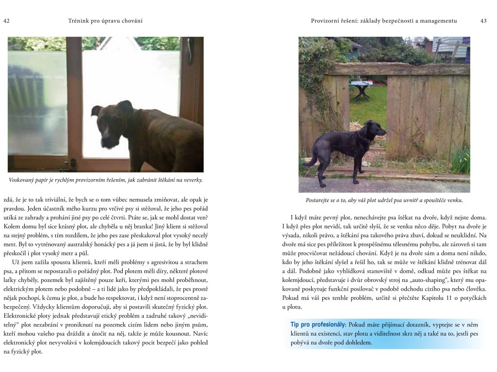 Dozvíte se i to, jak problémovému chování předcházet, jak se psem lépe komunikovat, jak v něm budovat samostatnost a odolnost vůči stresu a jak mu dát větší volnost při nácviku problematických situací.